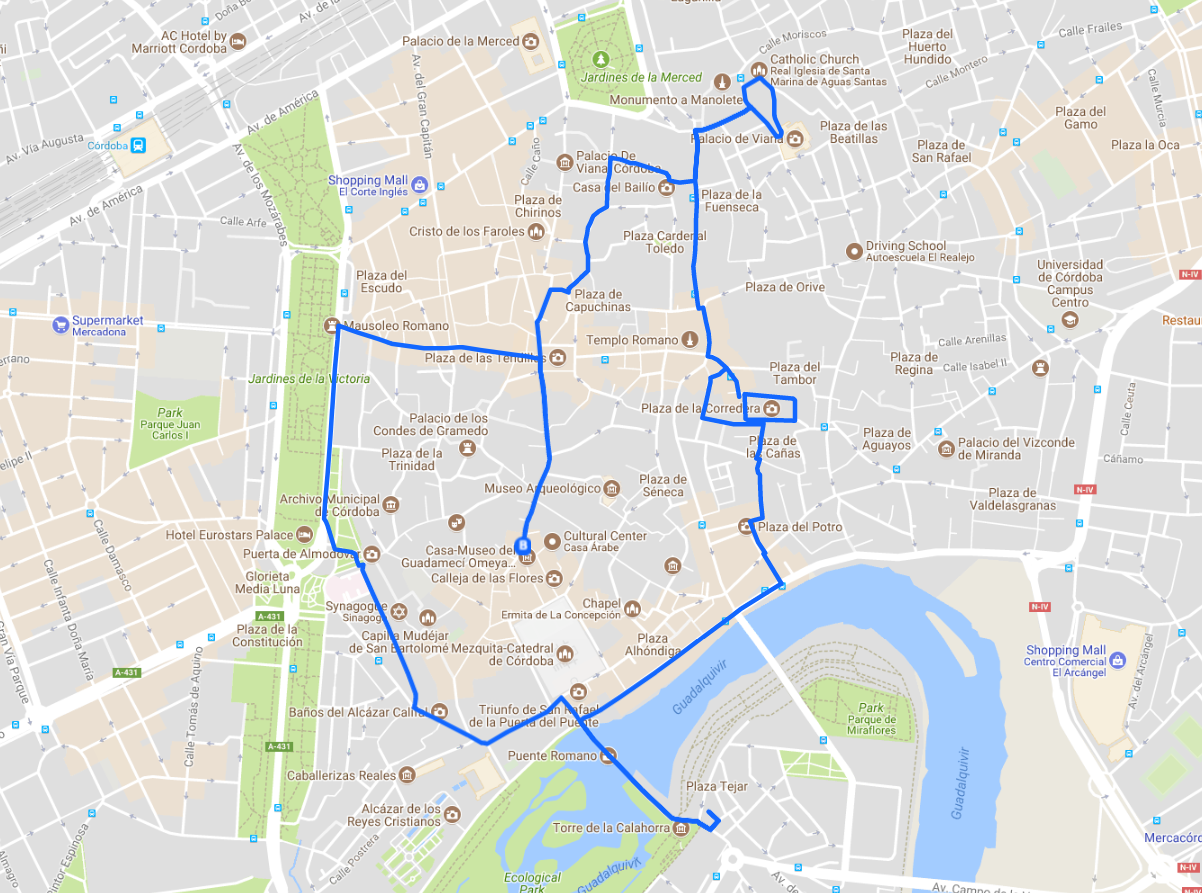 El recorrido finalizará en el mismo punto de inicio, en Plaza de las Tendillas.