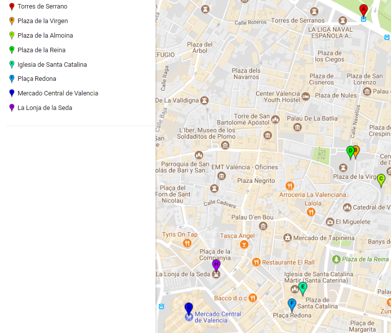 Durante el recorrido conocerás lugares como el Palacio de la Generalitat, la Catedral, Plaza de la Almoïna, Plaza Redonda, Lonja y Mercado Central. El guía te explicará datos interesantes sobre el lugar y podrás disfrutar de una tarde llena de aprendizaje. El tour finalizará en la Lonja de la Seda.