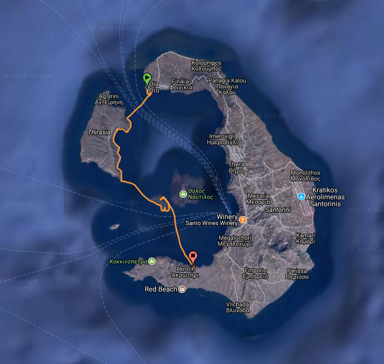 - Paddling inside the caldera and the islands that form the Santorini island complex.