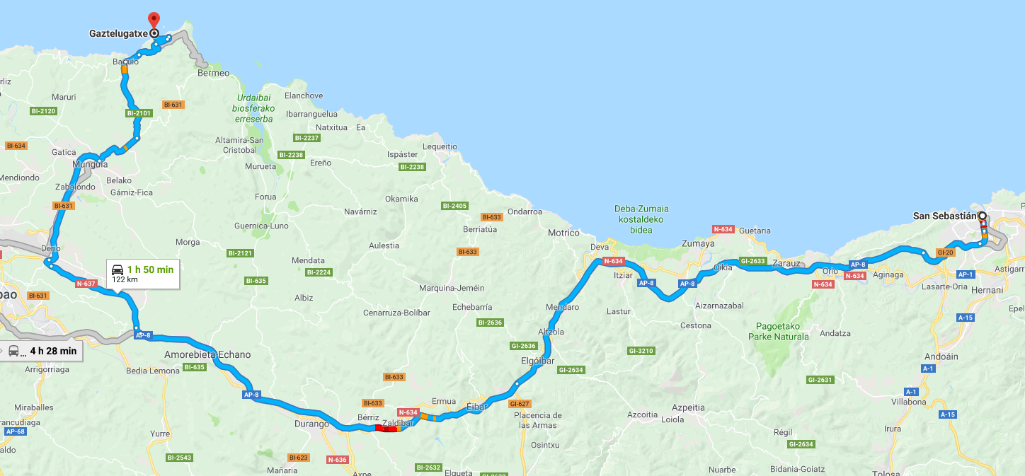 | Distance from San Sebastian to Gaztelugatxe | Download |