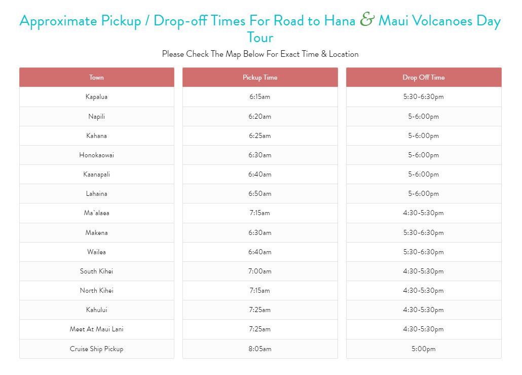 We provide meals on all our tours. Tour that start earlier in the morning include a continental breakfast after hotel pickup. Our Hana and Haleakala Volcano day tours include a picnic lunch. Our Haleakala Sunrise tour includes a hot, buffet breakfast after sunrise.